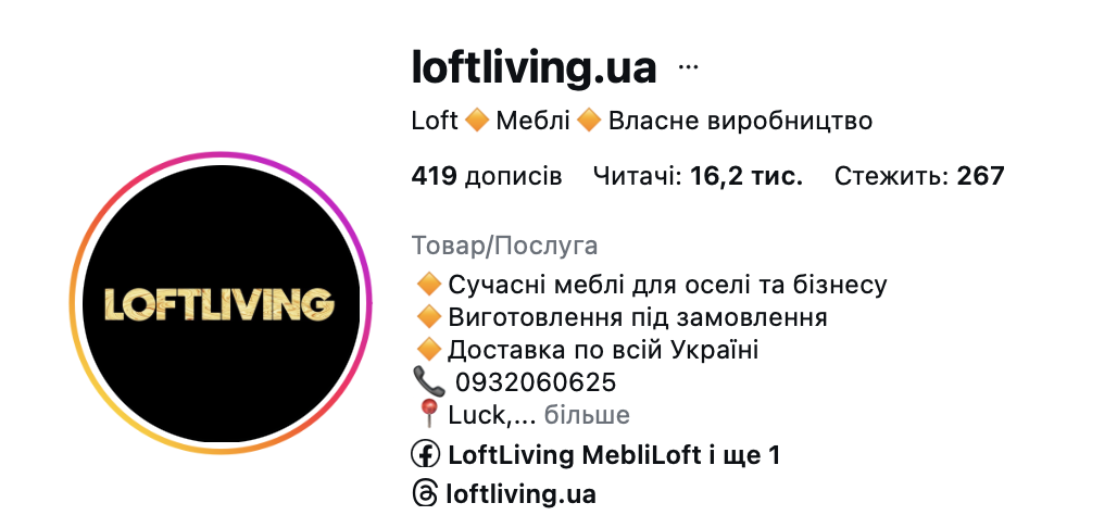 зібрали 16 000 підписників. Це якісна цільова аудиторія, яка зараз замовляє меблі через Інстаграм. Ціна підписника становить 1$, ціна кліка становить 0,10$. Середня ціна за продаж становить - $11